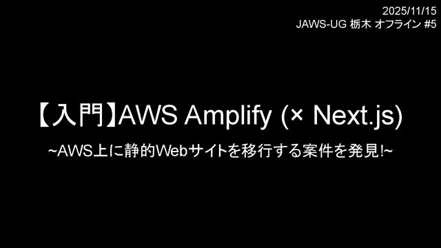 【入門】AWS Amplify (× Next.js) ~AWS上に静的Webサイトを移行する案件を発見!~ 2025/11/15 JAWS-UG 栃木 オフライン #5