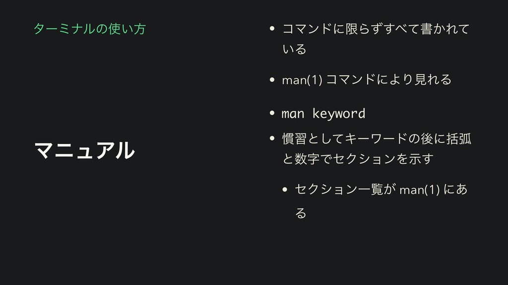 λʔϛφϧͷ͍ํ ϚχϡΞϧ • ίϚϯυʹݶΒͣͯ͢ॻ͔Εͯ ͍Δ • man(1) ίϚϯυʹΑΓݟΕΔ • man