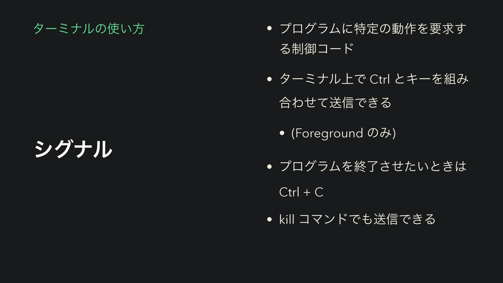 • (Foreground ͷΈ) • ϓϩάϥϜΛऴ͍ྃͤͨ͞ͱ͖ Ctrl + C • kill ίϚϯυͰૹ৴Ͱ͖Δ