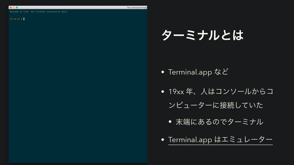 λʔϛφϧͱ • Terminal.app ͳͲ • 19xx ɺਓίϯιʔϧ͔Βί ϯϐϡʔλʔʹଓ͍ͯͨ͠ • ʹ͋ΔͷͰλʔϛφϧ