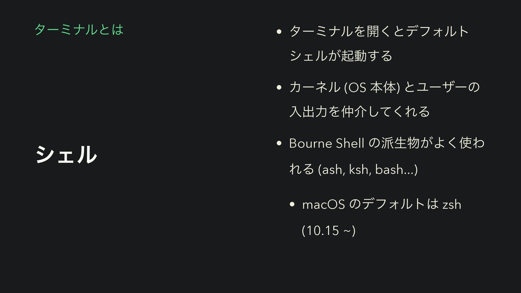 ೖग़ྗΛհͯ͘͠ΕΔ • Bourne Shell ͷੜ͕Α͘Θ ΕΔ (ash, ksh, bash...) • macOS ͷσϑΥϧτ zsh (10.15 ~)