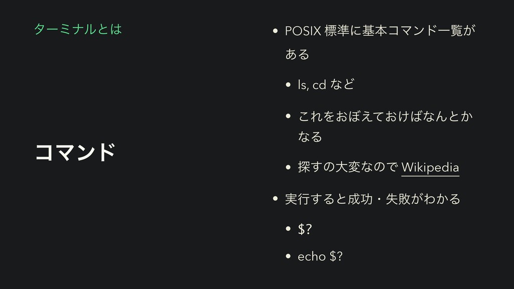λʔϛφϧͱ ίϚϯυ • POSIX ඪ४ʹجຊίϚϯυҰཡ͕ ͋Δ • ls, cd ͳͲ