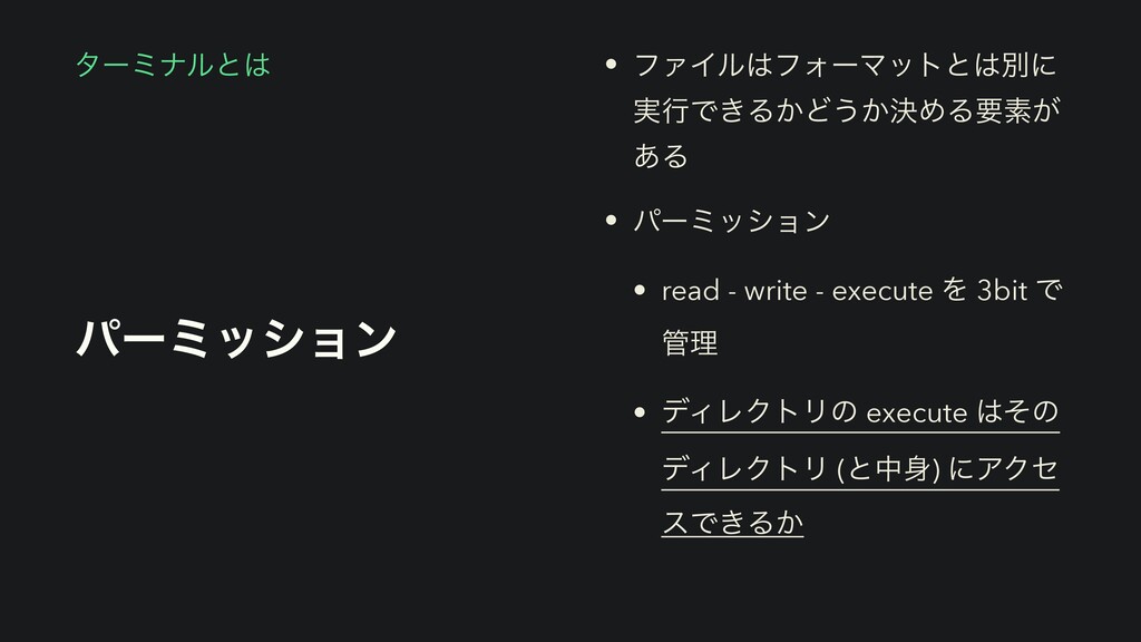 - write - execute Λ 3bit Ͱ ཧ • σΟϨΫτϦͷ execute ͦͷ σΟϨΫτϦ (ͱத) ʹΞΫη εͰ͖Δ͔