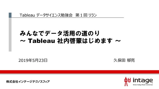 みんなでデータ活用の道のり ~ Tableau 社内啓蒙はじめます ~ Tableau データサイエンス勉強会 第1回 リラン 2019年5月23日