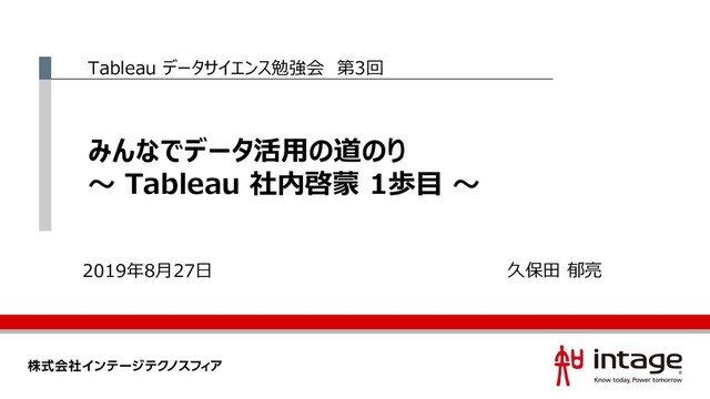みんなでデータ活用の道のり ~ Tableau 社内啓蒙 1歩目 ~ Tableau データサイエンス勉強会 第3回 2019年8月27日