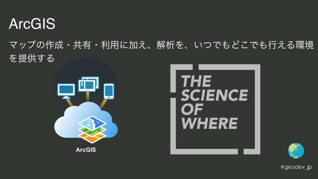 ArcGIS Ϛοϓͷ࡞ɾڞ༗ɾར༻ʹՃ͑ɺղੳΛɺ͍ͭͰͲ͜Ͱߦ͑Δڥ Λఏڙ͢Δ ArcGIS