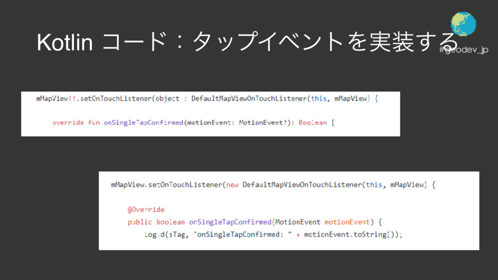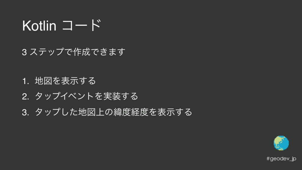 Kotlin ίʔυ 3 εςοϓͰ࡞Ͱ͖·͢ 1. ਤΛදࣔ͢Δ 2. λοϓΠϕϯτΛ࣮͢Δ 3. λοϓͨ͠ਤ্ͷҢܦΛදࣔ͢Δ