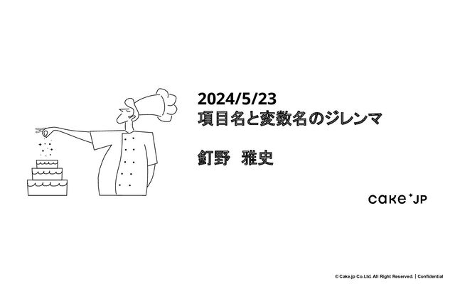 © Cake.jp Co.Ltd. All Right Reserved.|Confidential 2024/5/23 項目名と変数名のジレンマ 釘野 雅史
