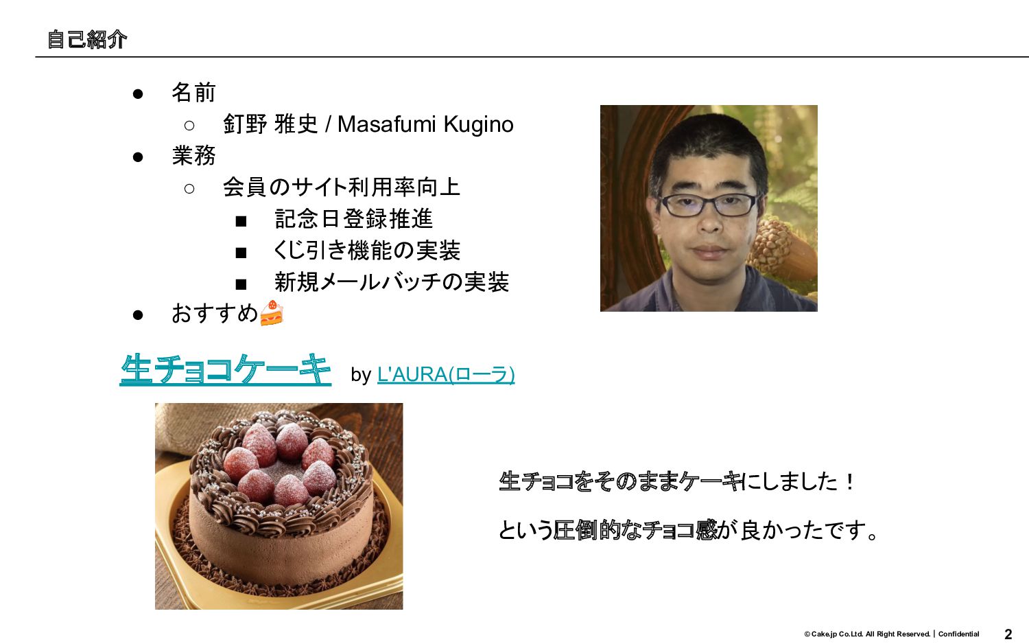2 © Cake.jp Co.Ltd. All Right Reserved.|Confidential 自己紹介 • 名前