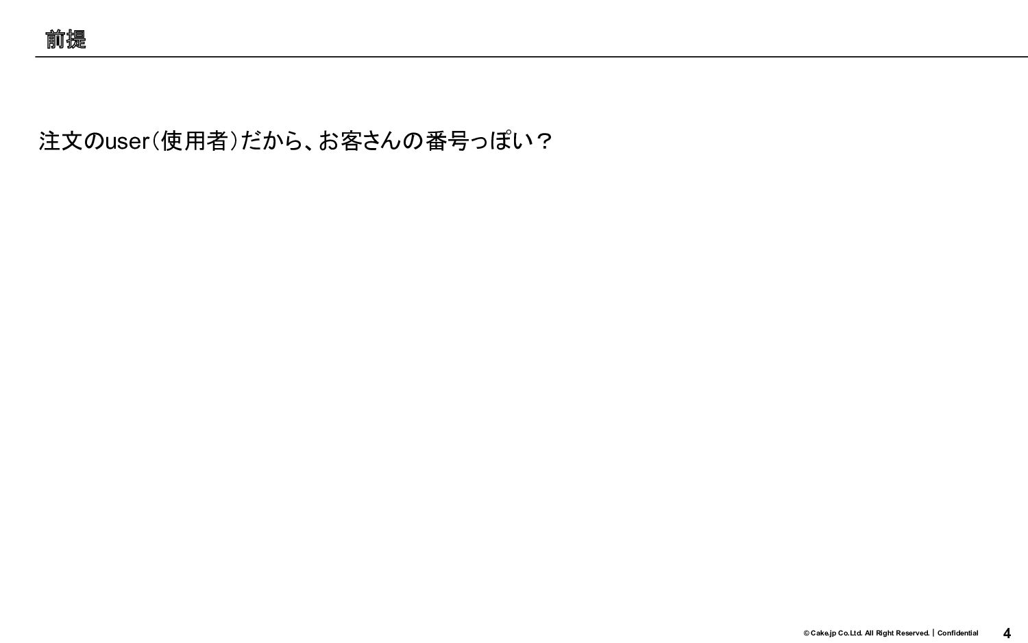 4 © Cake.jp Co.Ltd. All Right Reserved.|Confidential 注文のuser(使用者)だから、お客さんの番号っぽい? 前提