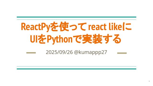 ReactPyを使ってreact likeに UIをPythonで実装する 2025/09/26 @kumappp27 1