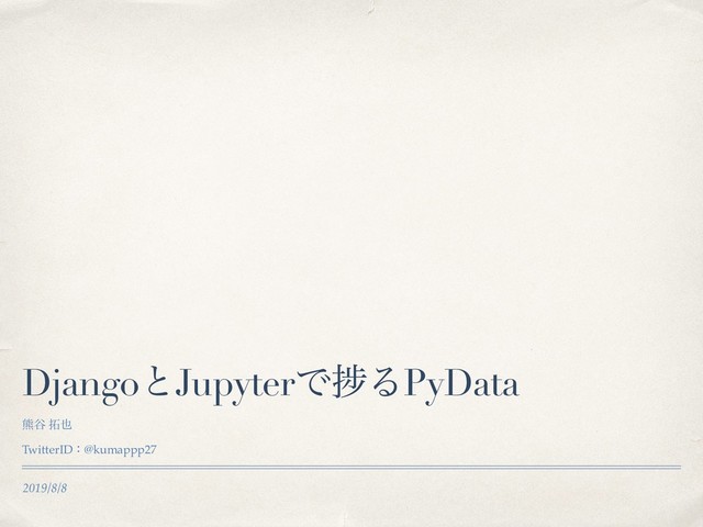 2019/8/8 DjangoͱJupyterͰḿΔPyData ۽୩ TwitterIDɿ@kumappp27
