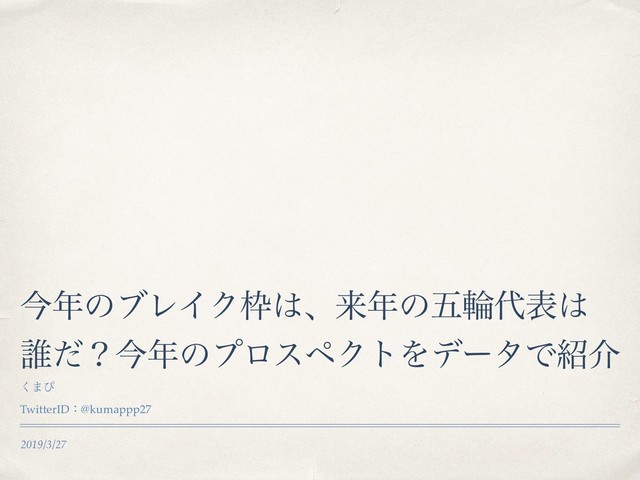 2019/3/27 ࠓͷϒϨΠΫɺདྷͷޒྠද ୭ͩʁࠓͷϓϩεϖΫτΛσʔλͰհ ͘·ͽ TwitterIDɿ@kumappp27