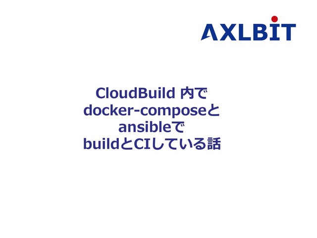 AXLBIT Inc. • docker-composeで構築対象イメージを起動 } -> その後 ansibleイメージを実⾏ とりあえず構築をCloudBuild化 12