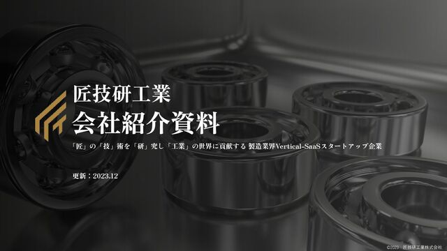 23人 2020年2月 ・LeadX創業 2022年9月 匠フォースリリース 2023年1月 「匠技研工業株式会社」 に社名を変更 2023年6月 プレシリーズAラウンドで 2.1億円の資金調達を発表 創業 ~ 事業ドメイン試行錯誤 匠フォースの開発とPMF(0→1) 事業拡大 (1→10) 沿革 2021年4月 ・すべての既存事業を撤退 →中小製造業向けにドメインを転換 匠フォース 2022年2月 シードラウンドで 6,000万円の資金調達 創業オフィスの様子 社名変更発表 現場に足を運び日々 (累計150社に訪問・ヒアリング実施)