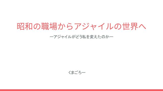 昭和の職場からアジャイルの世界へ ーアジャイルがどう私を変えたのかー くまごろー