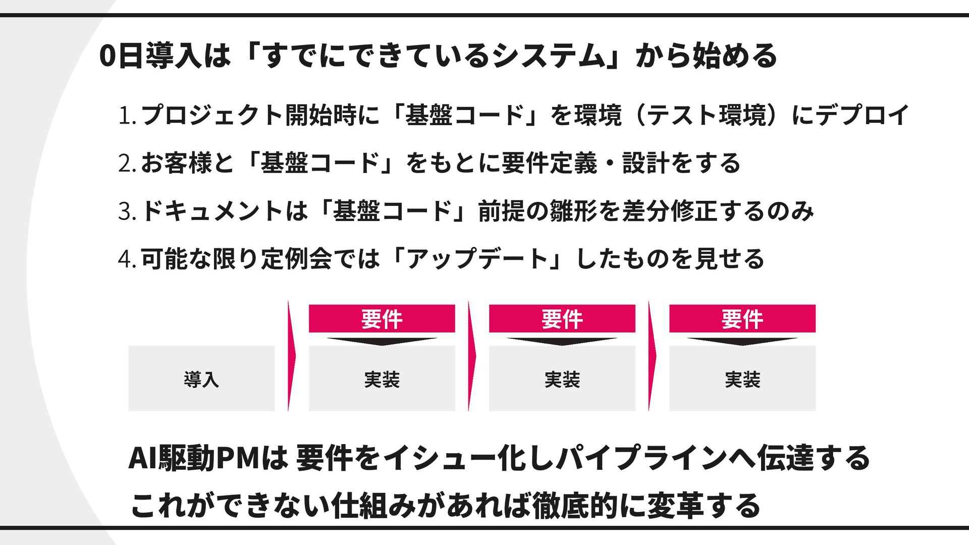 実装 要件 AI駆動PMは 要件をイシュー化しパイプラインへ伝達する これができない仕組みがあれば徹底的に変革する