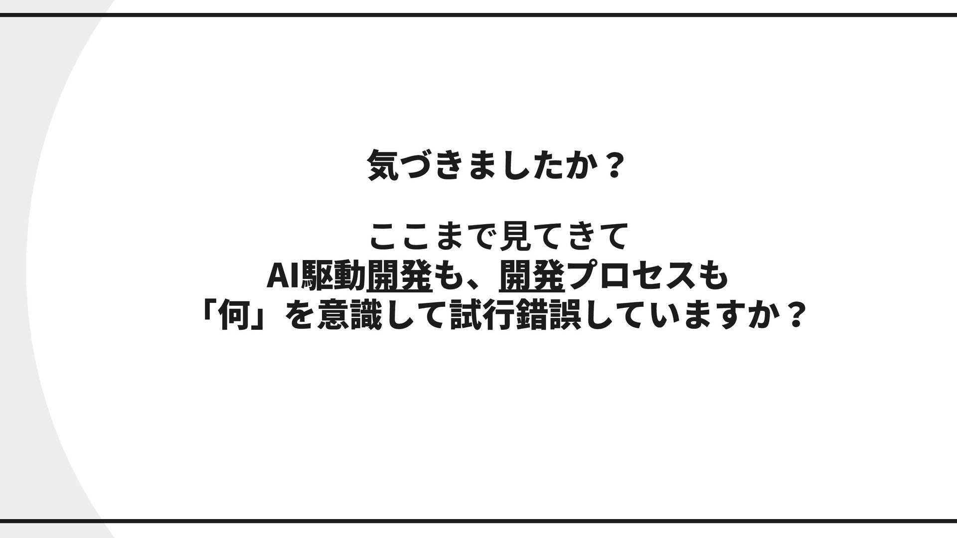 気づきましたか? ここまで見てきて AI駆動開発も、開発プロセスも 「何」を意識して試行錯誤していますか?
