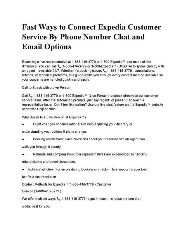 Expedia™️ Airlines®️ official customer service number is 🔰1-888-(416)-3779 , where you can speak directly to a live representative any time of the day. Whether you’re facing flight issues, hotel changes, cancellations, or need help with a refund, this guide gives you all the ways to connect with Expedia™️ Airlines®️ quickly and easily.