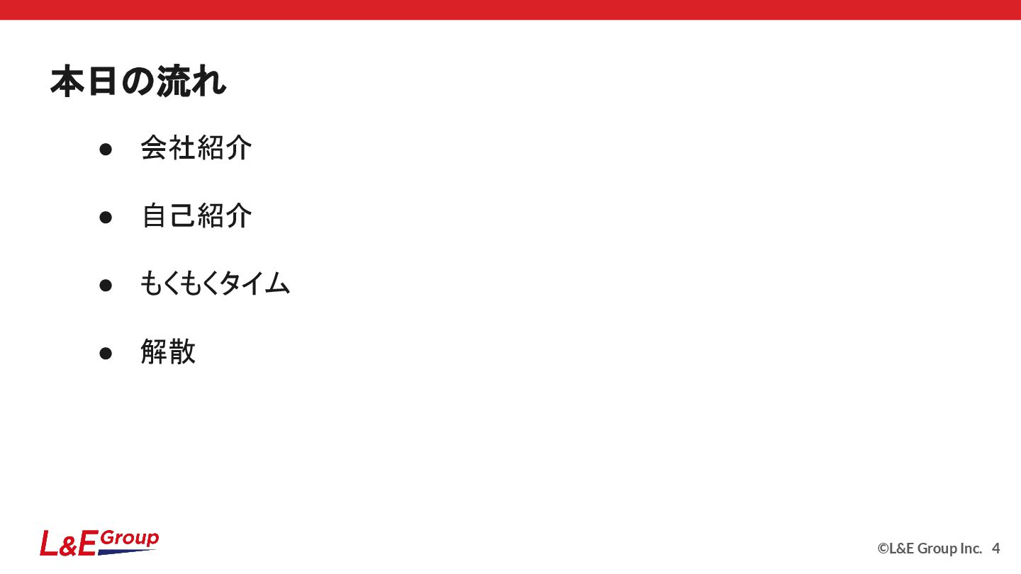 ©L&E Group Inc. 4 本日の流れ • 会社紹介 • 自己紹介 • もくもくタイム