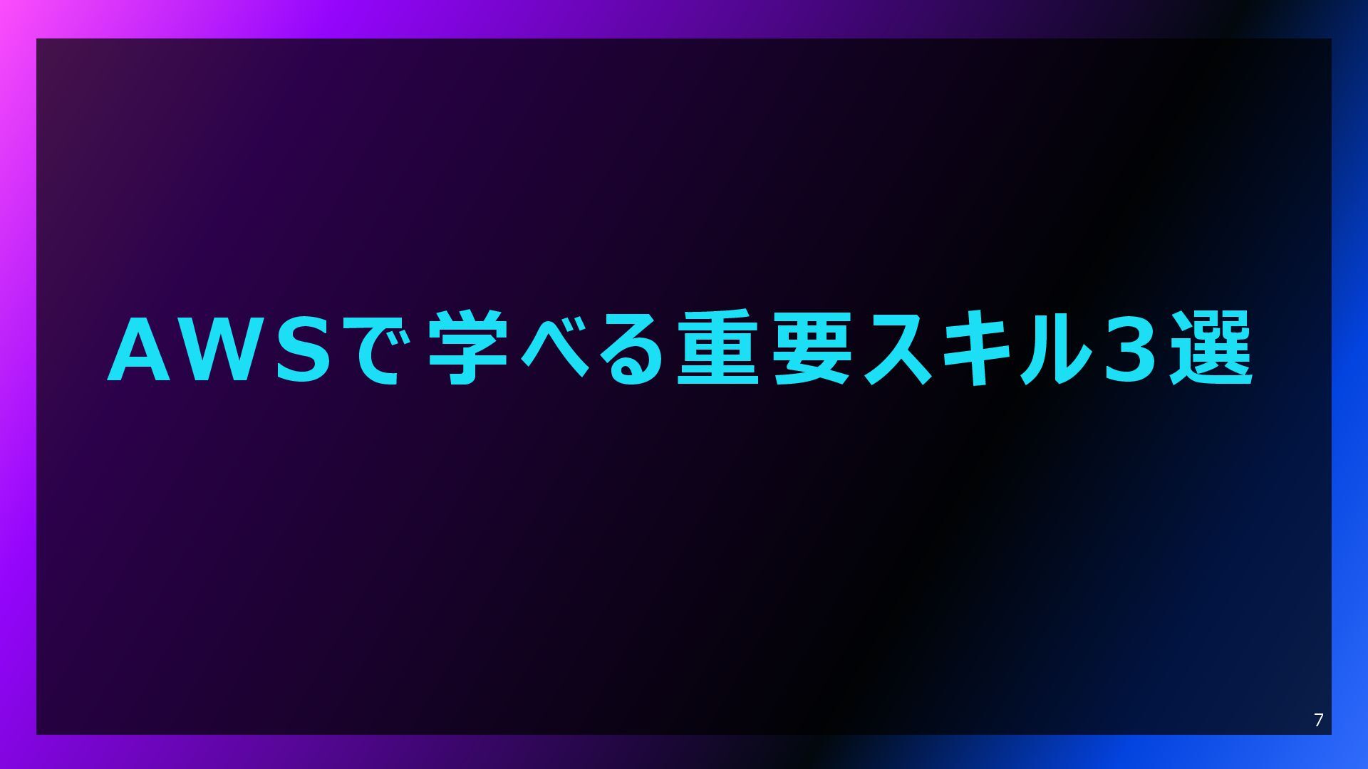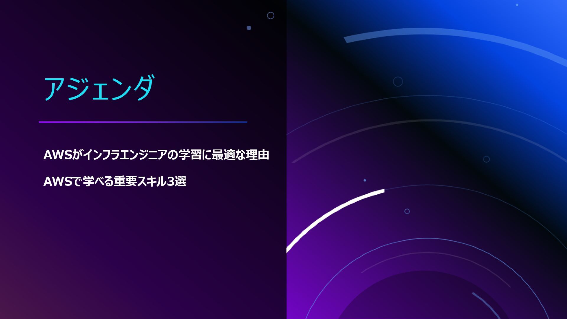 アジェンダ AWSがインフラエンジニアの学習に最適な理由 AWSで学べる重要スキル3選