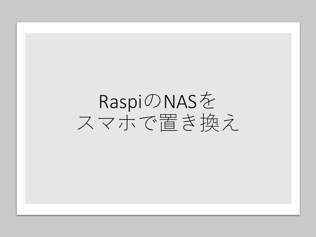第一回 Kosen LT ONLINE で発表したスライドです。 昔ラズパイで構築したNASをスマートフォンで置き換える話。