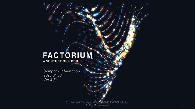to serve as a new business development department for a Japanese company. For decades, Japanese companies have been losing because they have failed to tackle new businesses such as platform businesses and digital businesses. Many large companies have structural reasons for not being able to take it seriously. FACTORIUM exists to bring back the glory of Japanese companies that were originally strong by creating a weapon of digital data science. In other words, we will take risks and take on business ideas that are difficult for large companies to realize, such as technology (AI, blockchain, AR/VR/MR, IoT, etc.) and the creation of new value. I believe that by continuing to create globally competitive digital businesses with a sense of speed, Japanese companies will be able to regain their glory in the world. Confidential. Copyright(C) 2018-2020 FACTORIUM,inc. All Rights Researved. 9