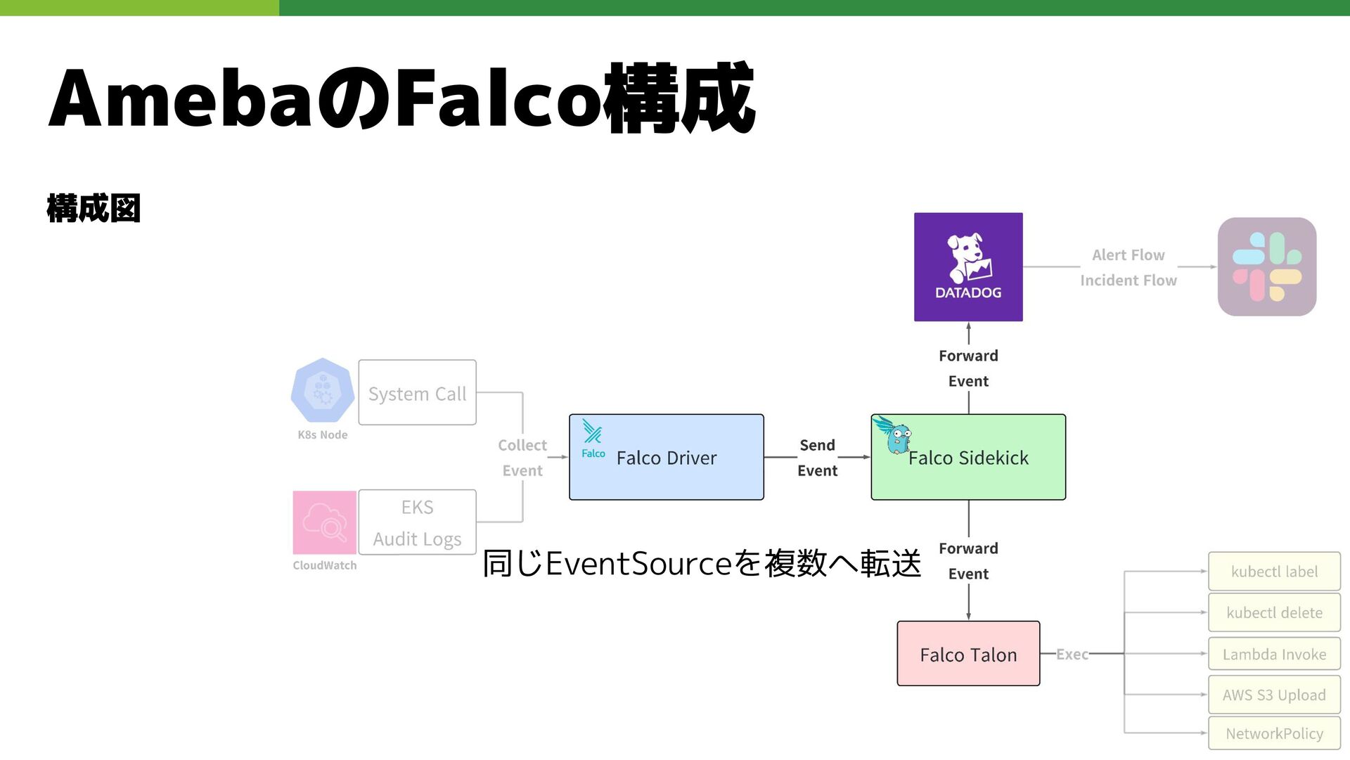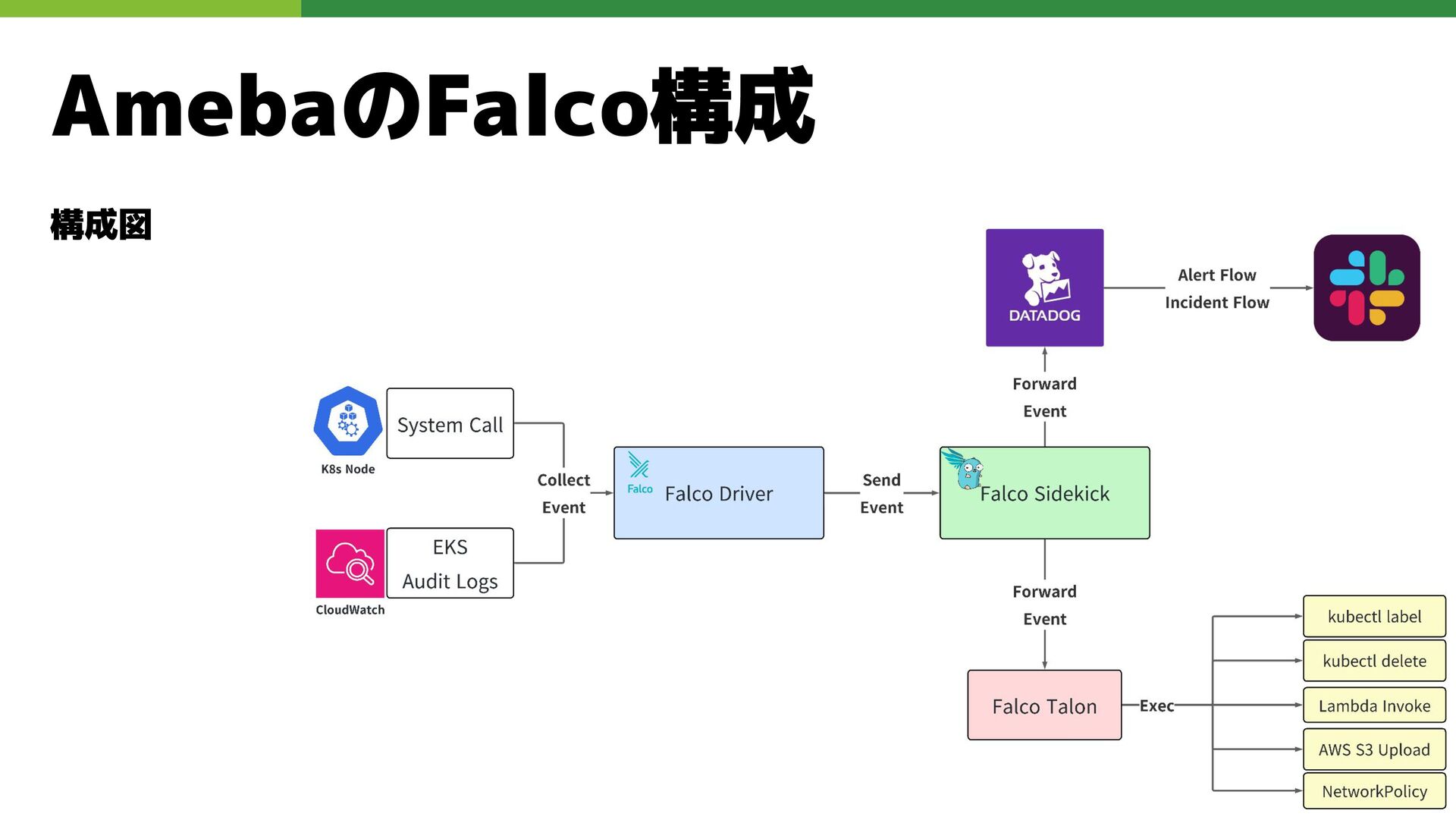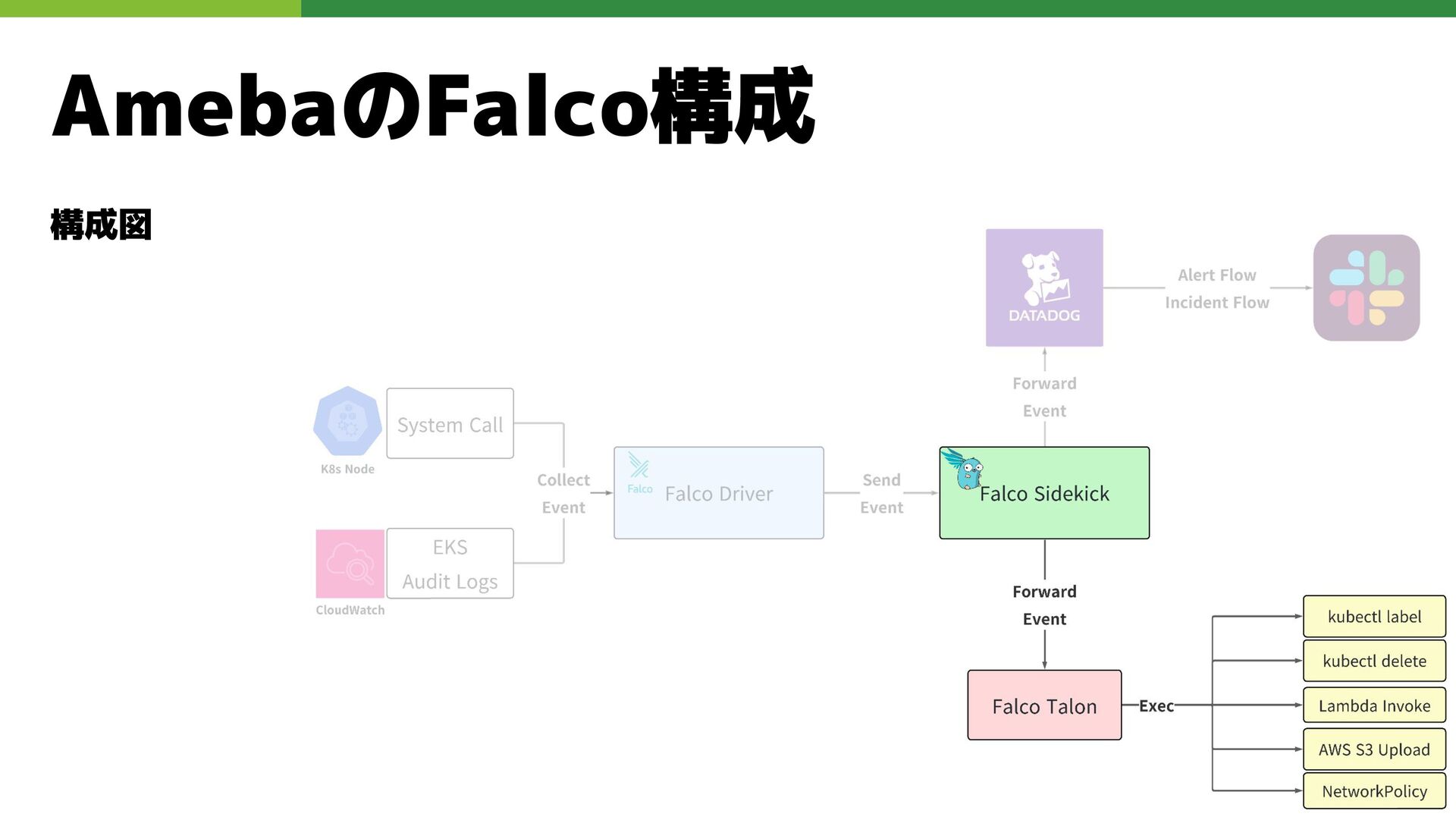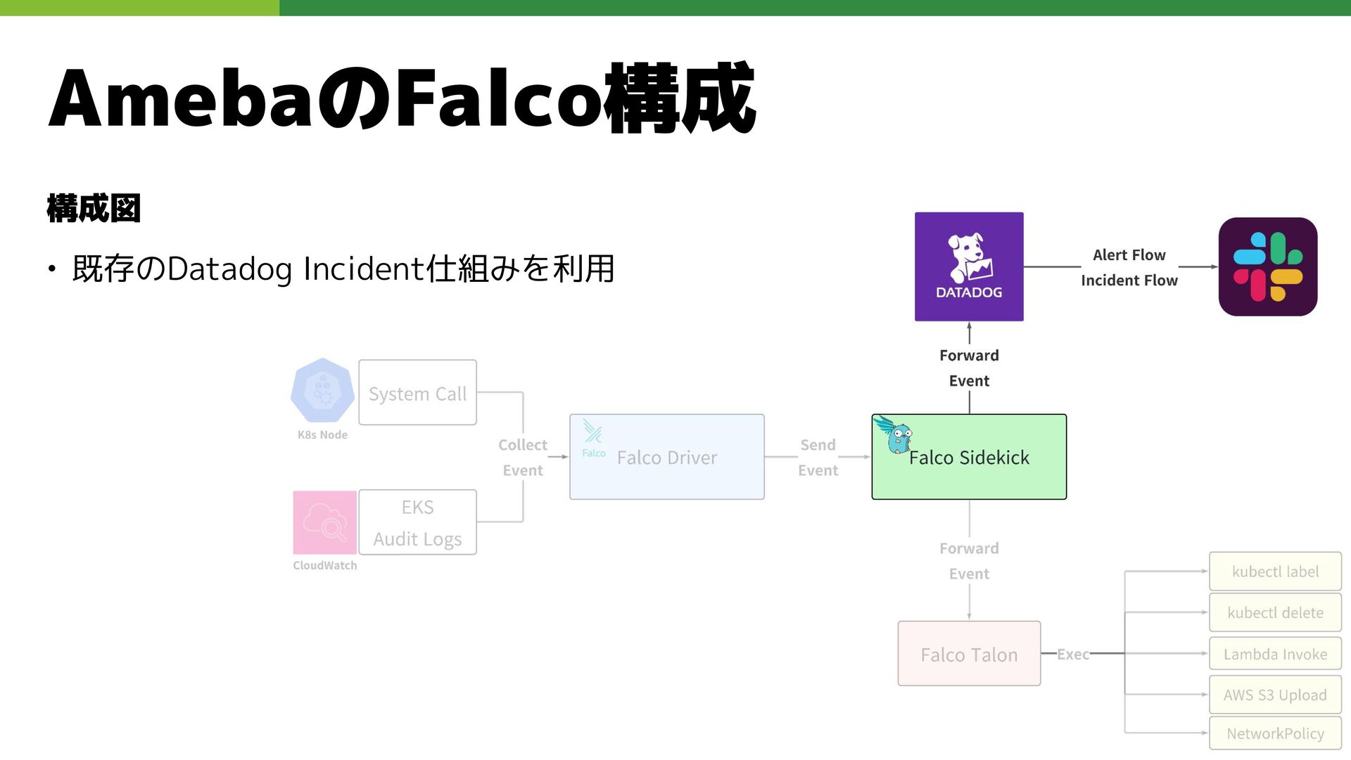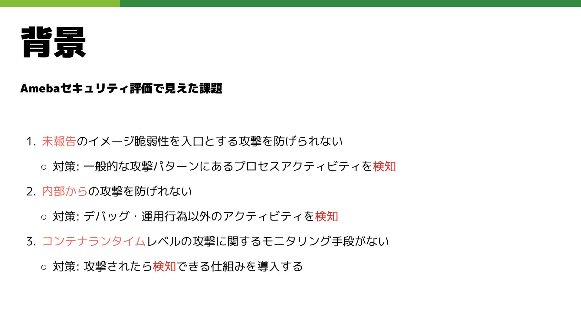 適切なRBAC・ServiceAccount *必要 ◦ 適切なNetwork Policy *必要 ◦ コンポーネントセキュリティ設定 (認証・認可・TLS) *Managedの場合、一部設定済み • Pod Security ◦ 適切なK8s Secrets扱い *必要 ◦ イメージ脆弱性対応(サプライチェーン攻撃) *必要 ◦ Security Contexts関連設定 *必要 ◦ RuntimeClass / Sandbox Podの使用 * 使用事例が少ない ◦ Linux Kernel (Seccomp, AppArmor, SELinux) * Managedの場合、制限がある コンテナランタイム セキュリティ