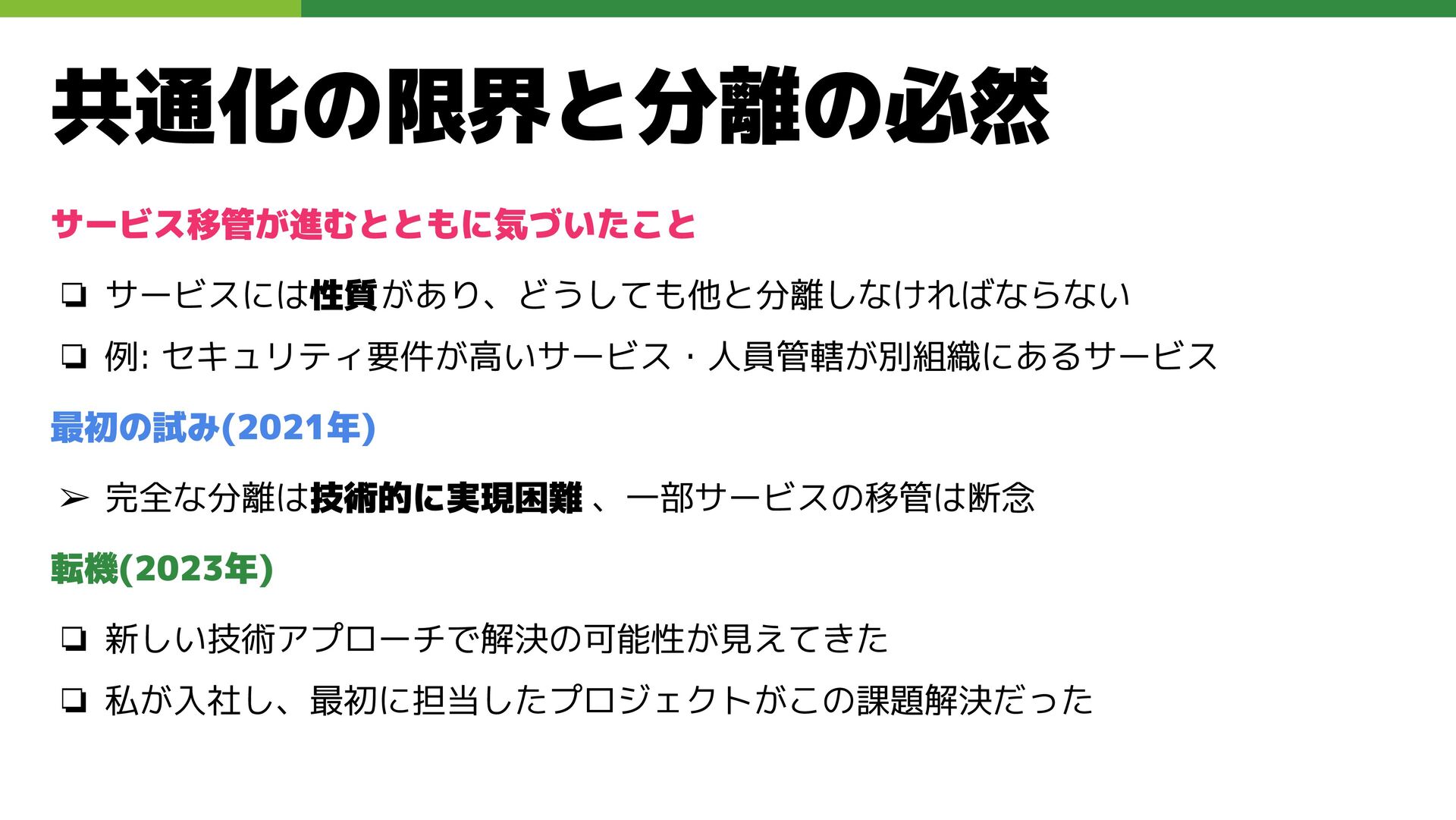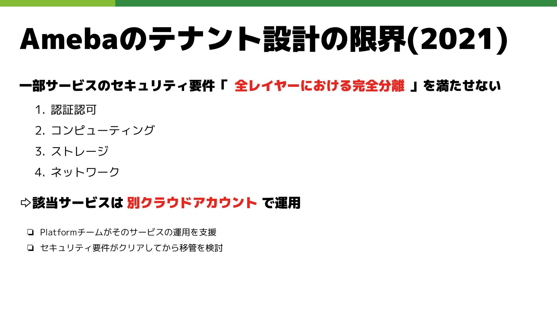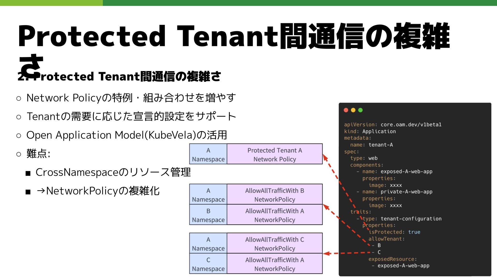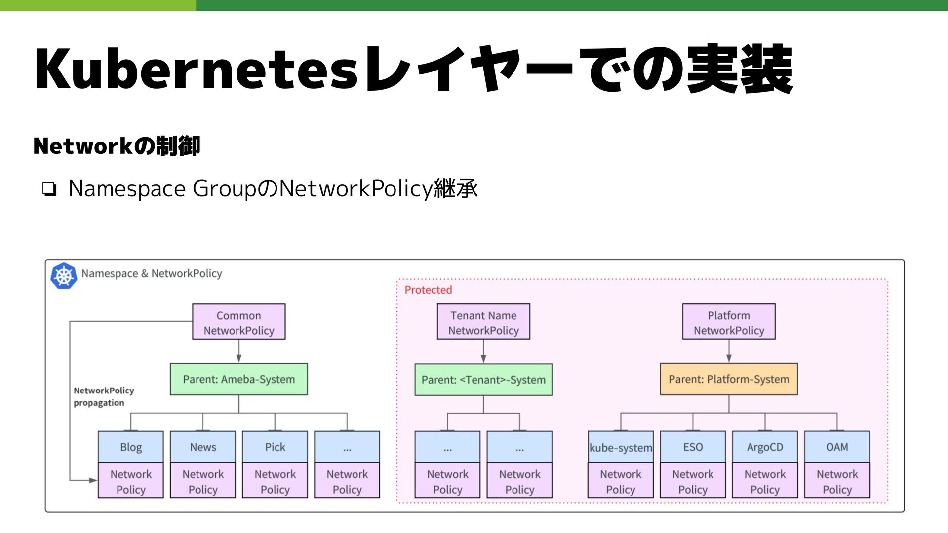 2021年当時、EKS上StableなNetwork Policyソリューションがない ◦ Pod to AWS: 2021年当時、Security Groups for Pod機能がIstioと衝突があったため、使用不可 ❏ 2023年以降いずれも改善された ✅ ◦ Pod to Pod: EKS vpccniにL4のNetwork Policy が実装 ◦ Pod to AWS: Security Groups for Pod 再検証した結果、衝突現象が解消された ❏ DB/CacheのSGでPod SGのみを許可する ◦ Network PolicyがL7まで対応できたら、Security Groups for Podが不要になる