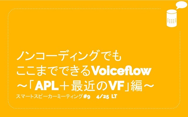【大阪】スマートスピーカーミーティング 2019/04/25 のLTの資料です。Vocieflowでできること、今回は特にAPL周りの話と、最近の大型アップデートの話をしてきました。