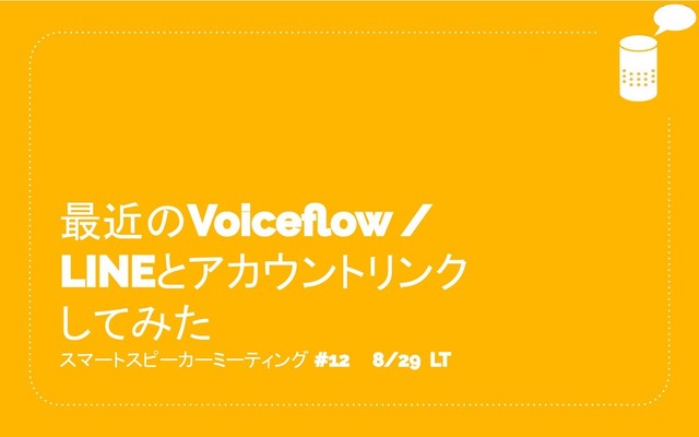 スマートスピーカーミーティング 2019/08/29 のLT資料です。最近のVoiceflowの新機能と、VoiceflowでのLINEとアカウントリンクについて、話しました。