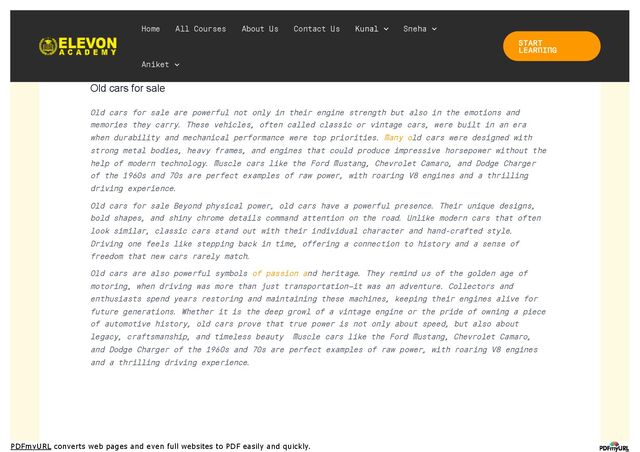 Old cars for sale Beyond physical power, old cars have a powerful presence. Their unique designs, bold shapes, and shiny chrome details command attention on the road. Unlike modern cars that often look similar, classic cars stand out with their individual character and hand-crafted style. Driving one feels like stepping back in time, offering a connection to history and a sense of freedom that new cars rarely match.