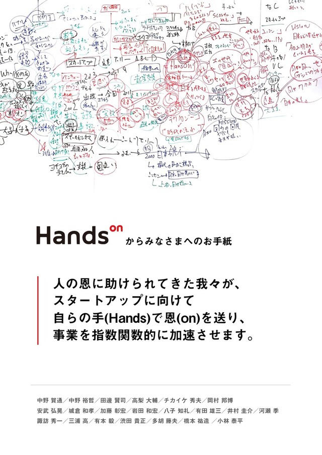 人の恩に助けられてきた我々が、 スタートアップに向けて 自らの手(Hands)で恩(on)を送り、 事業を指数関数的に加速させます。