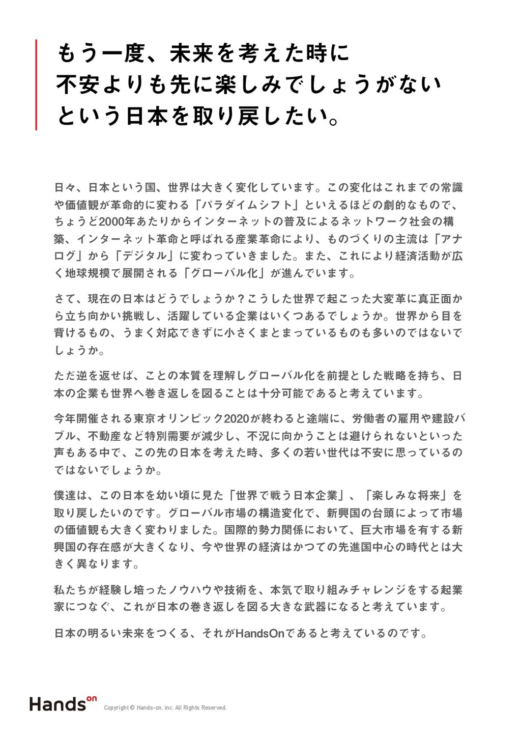 ハンズオンへのお問い合わせはこちら https://www.hands-on.inc/ [email protected]