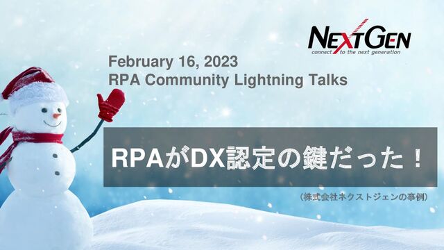 RPAがDX認定の鍵だった! February 16, 2023 RPA Community Lightning Talks (株式会社ネクストジェンの事例)