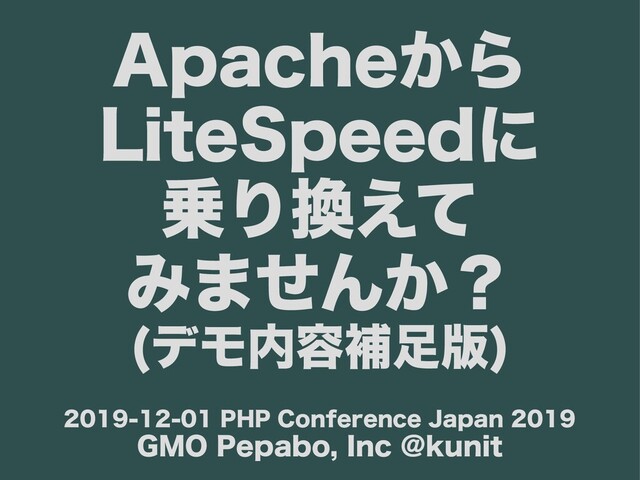 Apacheから LiteSpeedに 乗り換えて みませんか? (デモ内容補足版) 2019-12-01 PHP Conference Japan 2019