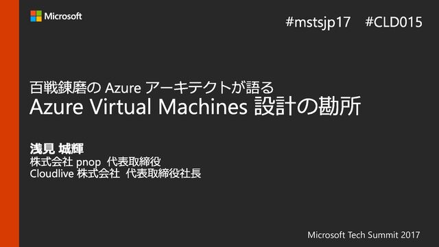 Microsoft Tech Summit 2017でお話しさせていただいた、『Azure Virtual Machines設計の勘所』のセッションスライドです。 Azure Virtual Machinesの設計における、インスタンス、ネットワーク、回復性、スケールのお話しをさせていただきました。