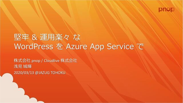アクセスはフィルタ アクセス制限 コンテンツ管理者 /wp-admin への アクセスはフィルタ コンテンツ管理用 WordPress /wp-contents Azure AD 認証 プライマリ mount mount アクセス制限 CDN WAF CDN WAF Azure Front Door Azure AD App Service Azure Storage Azure DB for MySQL Azure AD 認証