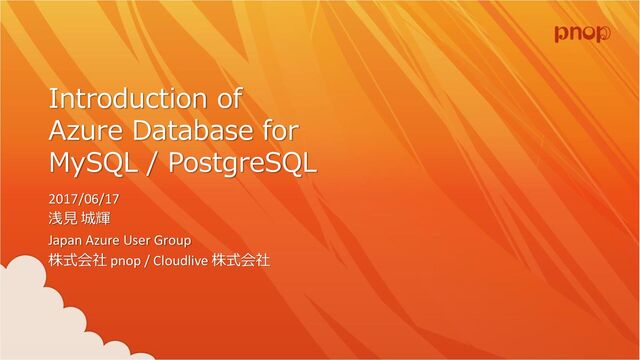Introduction of Azure Database for MySQL / PostgreSQL 2017/06/17 浅見