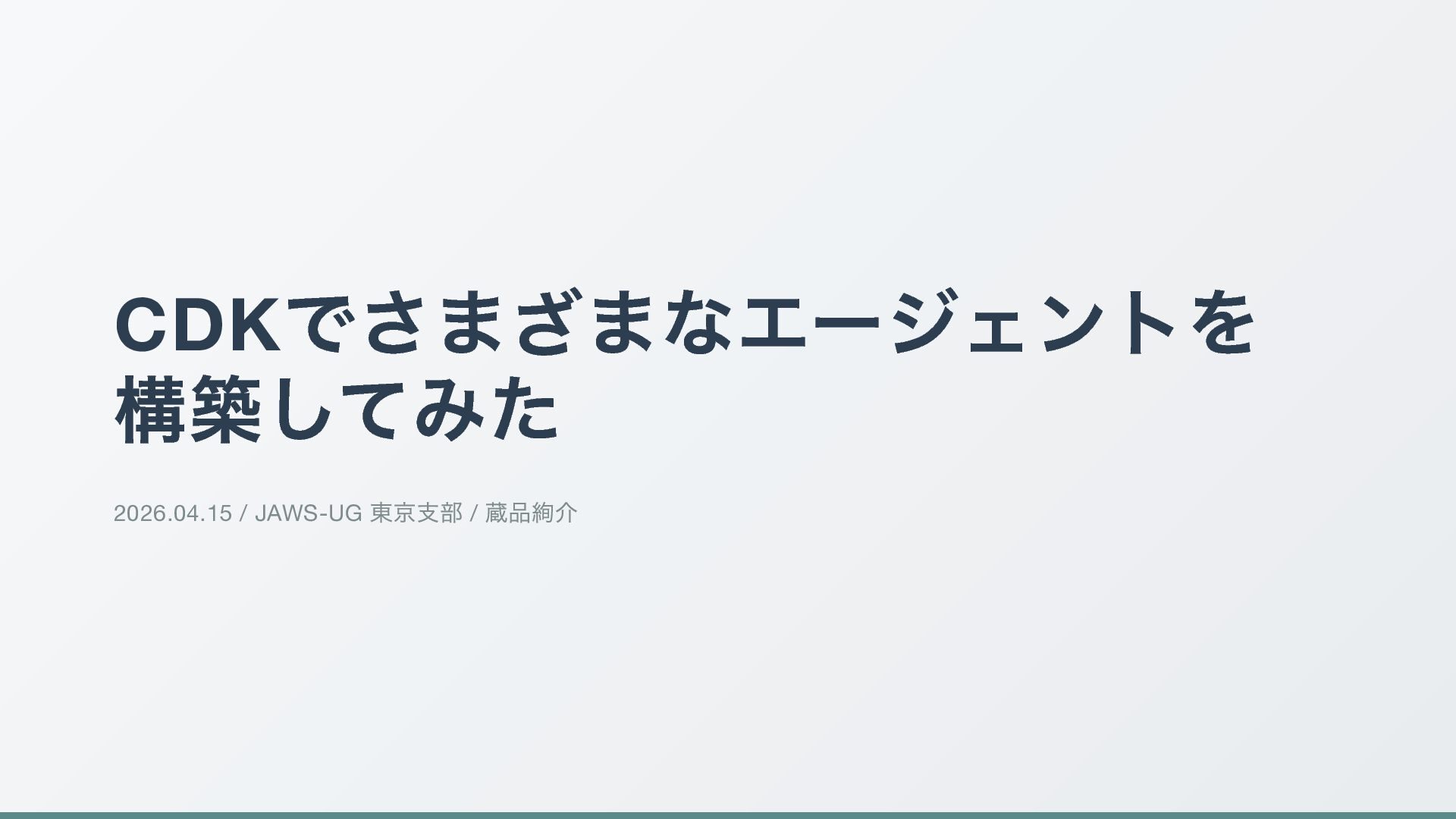 CDK でさまざまなエージェントを 構築してみた 2026.04.15 / JAWS-UG 東京支部 / 蔵品絢介