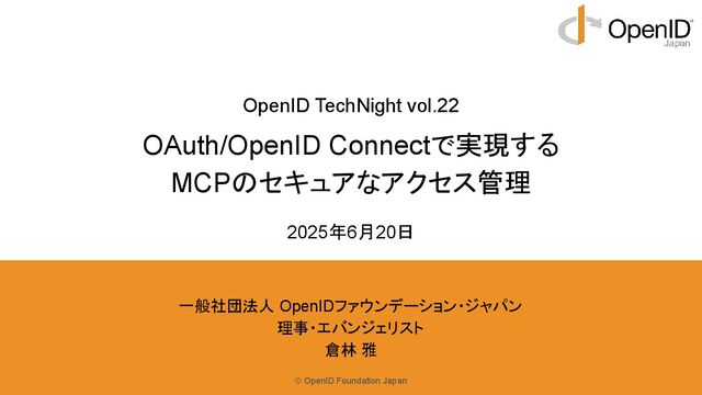 新たなAuthorization Serverを使用するたびに、手動による Clientの事前登録はユーザーの手間となる。 • また、ClientがすべてのMCP ServerとAuthorization Serverを事前に把握しているとは限らない。 • そのため、Authorization ServerはOAuth 2.0 Dynamic Client Registration Protocol (RFC7591)に従い、Clientか らリクエストを受けて自動的に登録する。 HTTP/1.1 201 Created Content-Type: application/json Cache-Control: no-store Pragma: no-cache { "client_id": "s6BhdRkqt3", "client_secret": "cf136dc3c1fc93f31185e5885805d", "client_id_issued_at": 2893256800, "client_secret_expires_at": 2893276800, "redirect_uris": ["https://client.example.org/cb"], "grant_types": ["authorization_code", "refresh_token"], "client_name": "My Example MCP Client", "token_endpoint_auth_method": "client_secret_basic", } POST /register HTTP/1.1 Content-Type: application/json Accept: application/json Host: api.example.com { "redirect_uris": ["https://client.example.org/cb"], "client_name": "My Example MCP Client", "scope": "calendar contacts", "token_endpoint_auth_method": "client_secret_basic" } Client Registrationリクエスト Client Informationレスポンス OAuthに必要なClient ID/Secretが取得できる Clientの名称やscopeなどを登録する 30 Latest draft
