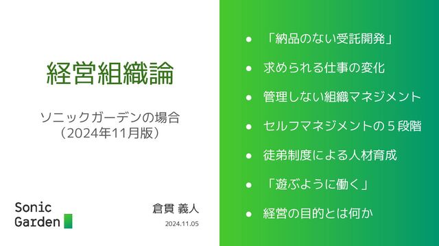 経営組織論〜ソニックガーデンの場合(2024/11版)