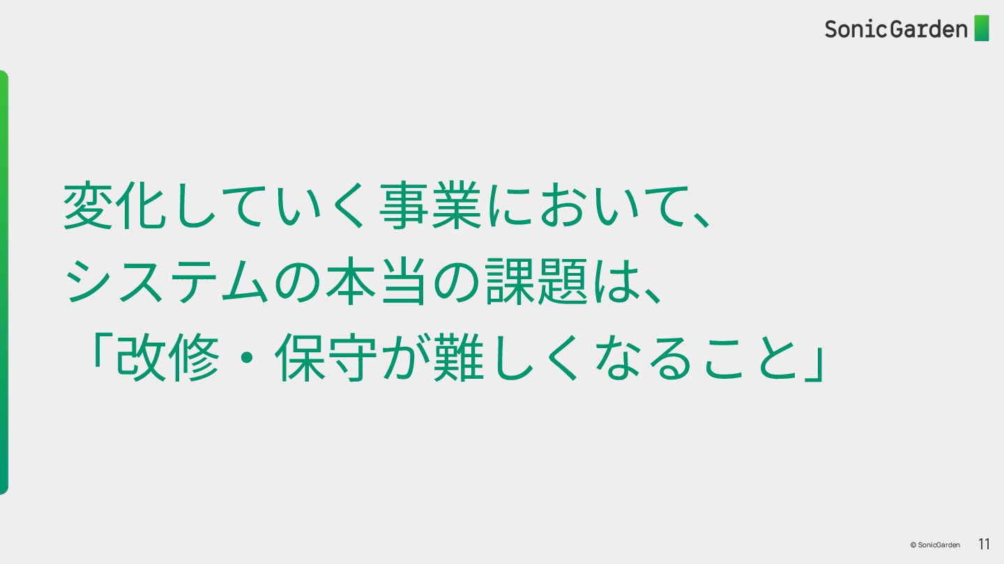 © SonicGarden 変化していく事業において、 システムの本当の課題は、 「改修‧保守が難しくなること」 11