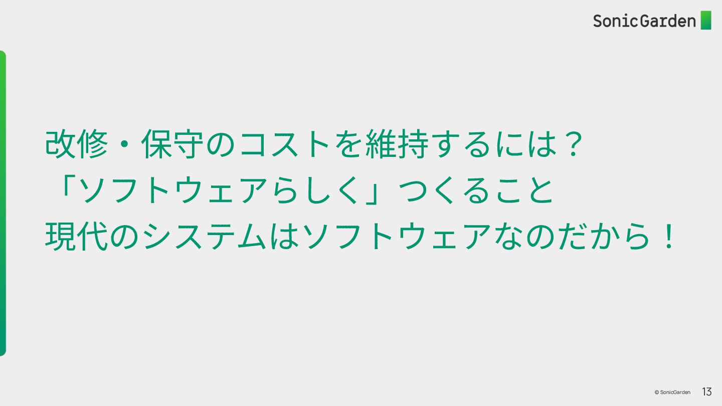 © SonicGarden 改修‧保守のコストを維持するには? 「ソフトウェアらしく」つくること 現代のシステムはソフトウェアなのだから! 13