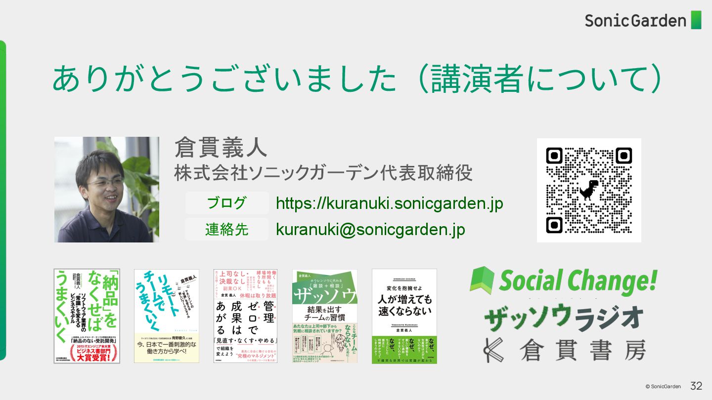 © SonicGarden ありがとうございました(講演者について) 32 倉貫義人 株式会社ソニックガーデン代表取締役 https://kuranuki.sonicgarden.jp ブログ 連絡先