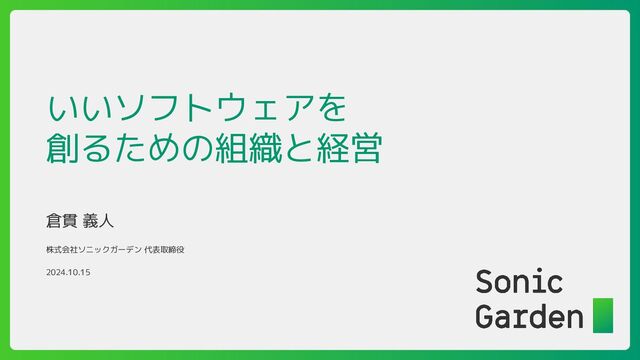 いいソフトウェアを 創るための組織と経営 倉貫 義人 株式会社ソニックガーデン 代表取締役 2024.10.15