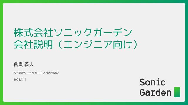 株式会社ソニックガーデン 会社説明(エンジニア向け) 倉貫 義人 株式会社ソニックガーデン 代表取締役 2025.4.11