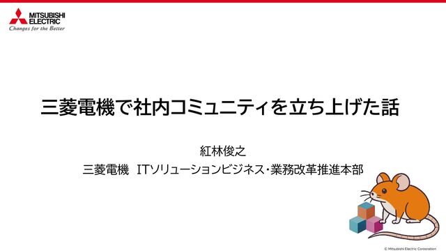 © Mitsubishi Electric Corporation 三菱電機で社内コミュニティを立ち上げた話 紅林俊之 三菱電機 ITソリューションビジネス・業務改革推進本部