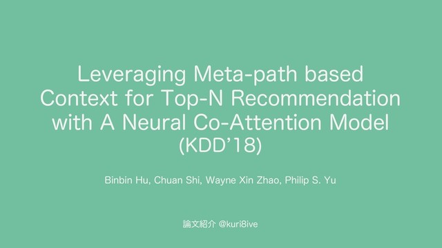 KDD 2018@Research Trackの論文 "Leveraging Meta-path based Context for Top-N Recommendation with A Neural Co-Attention Model" の紹介スライドです。(http://shichuan.org/doc/47.pdf)