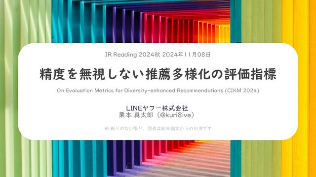 ⚫ Maximal Marginal Relevance (MMR)[5] ⚫ Determinantal Point Process (DPP)[6] ⚫ DGRec[34] ⚫評価対象 ⚫ 推薦結果全体 ⚫ 効果的なアイテム群(:= 推薦結果とテストデータの積集合) 予備調査|効果的な推薦かを区別できていない例(1/2) [43] Joint optimization of tree-based index and deep model for recommender systems (NeurIPS'19) [44] Learning tree-based deep model for recommender systems (KDD'18) [5] The use of MMR, diversity-based reranking for reordering documents and producing summaries (SIGIR'98) [6] Fast greedy map inference for determinantal point process to improve recommendation diversity (NeurIPS'18) [34] DGRec: Graph Neural Network for Recommendation with Diversified Embedding Generation (WSDM'23)